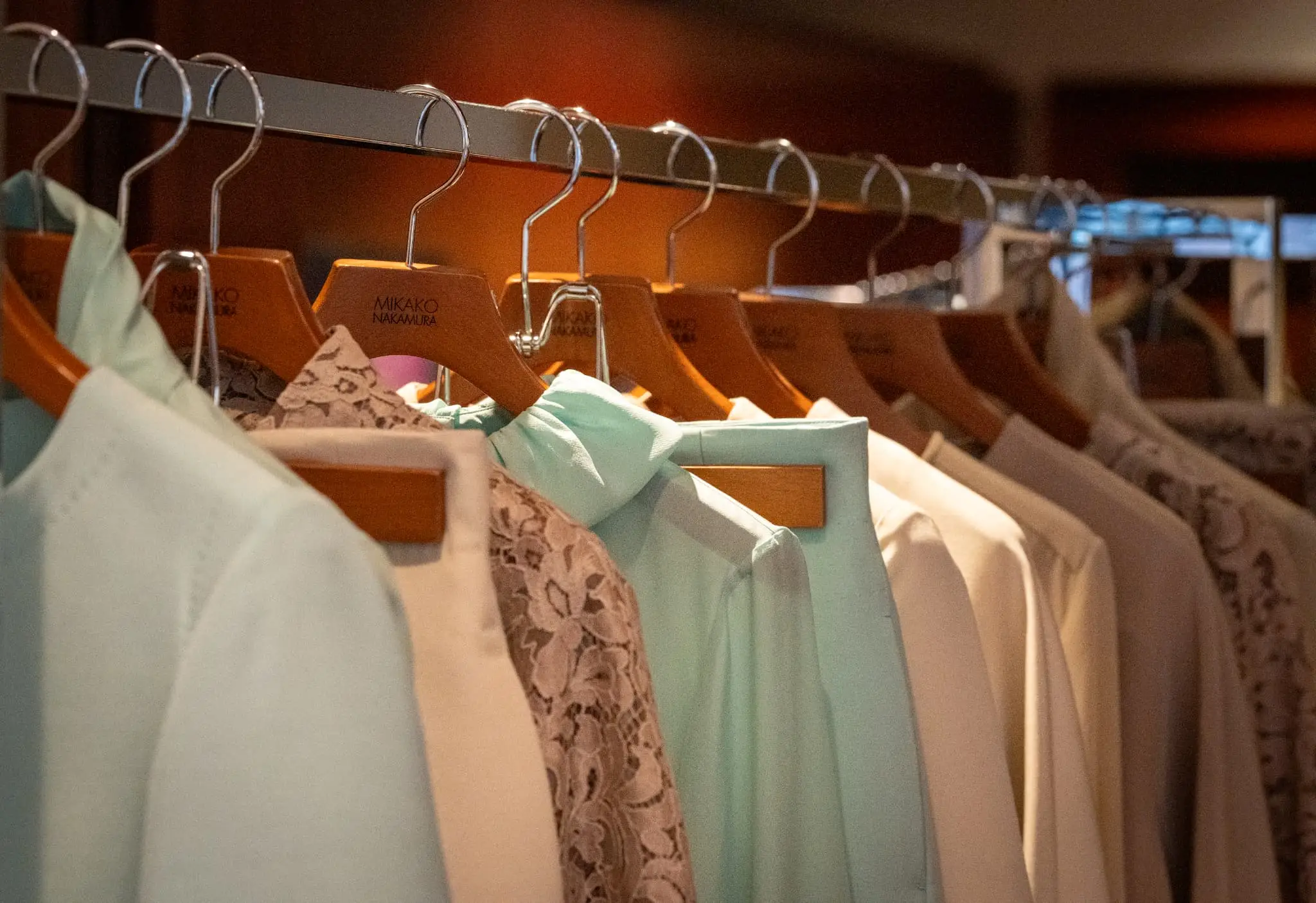 Designer MIKAKO NAKAMURA values the natural beauty in high-quality fabrics and minimal design, leaving the wearer’s individual personality to shine through. She compares her apparel to a wholesome meal with fresh ingredients: naturally tasty, with just a hint of seasoning. Unlike mass-produced fast-fashion, each garment is made with care by highly skilled workers at her atelier — timeless styles that she hopes will be associated with special occasions and happy memories, passed down over generations.