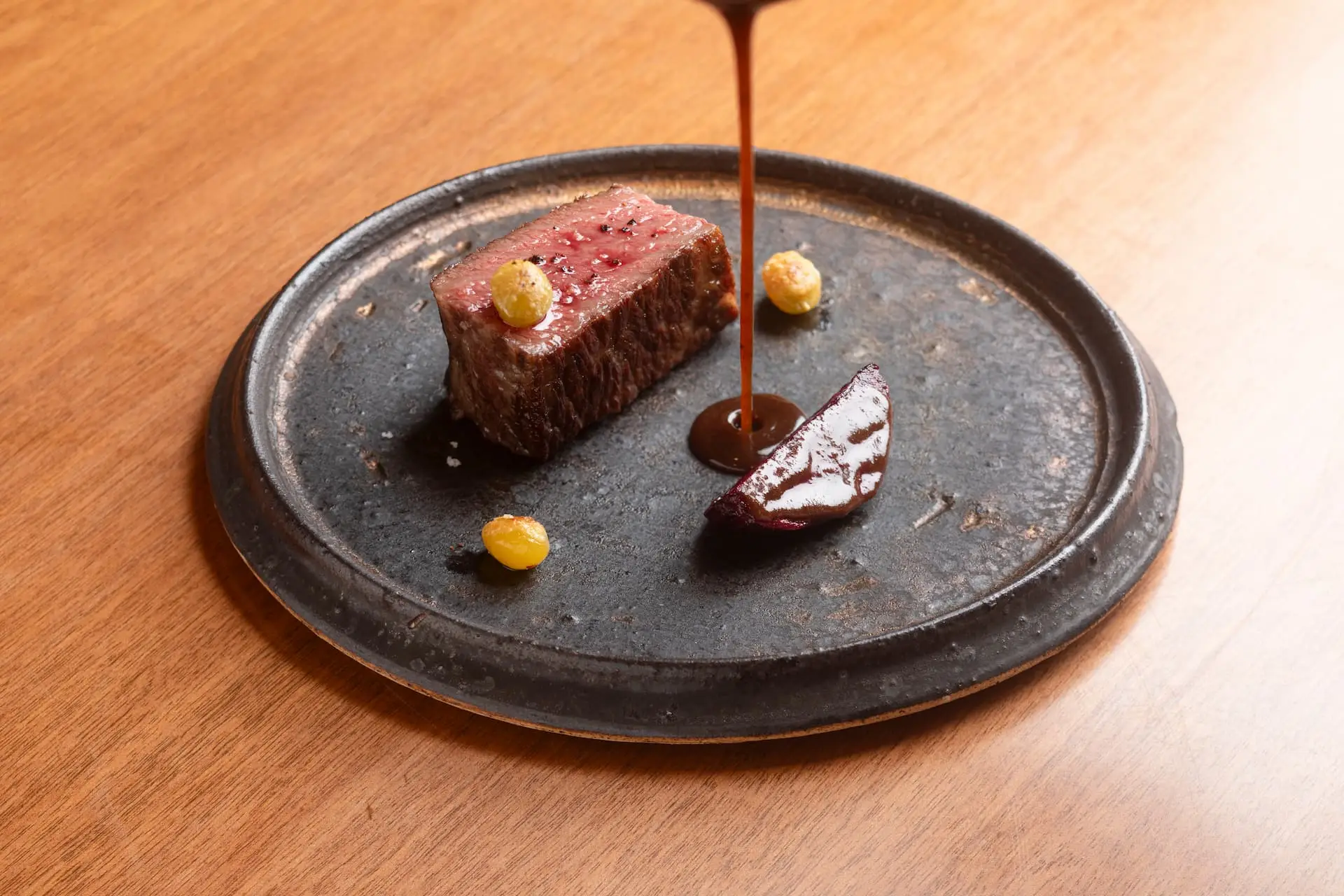 L'Arbre is a restaurant serving authentic French cuisine using native Japanese ingredients. Its name refers to the tree (arbre in French) along with the timber and the soil, rooted in its natural and historical environment in the Akiruno region. Local produce includes prime Akigawa Beef, wild Ayu fish (sweetfish) from Tokyo's natural water, Tokyo Shamo chicken, Norabō-na (a traditional Japanese leafy green) and many other native mountain vegetables.
