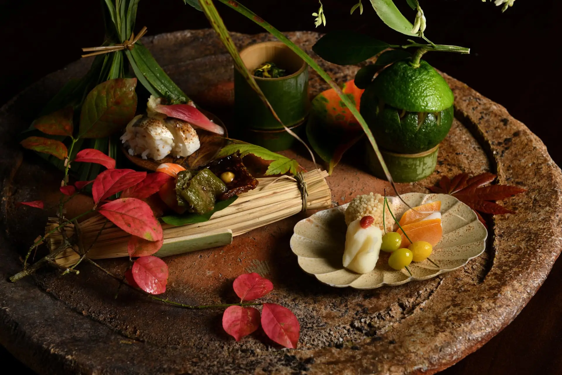 Savor seasonal Satoyama mountain village cuisine, where bamboo cut from the bamboo forest is used for some of the vessels. During the ayu fishing season, you may even witness a traditional fisherman catch ayu right before your eyes which is an unforgettable moment that connects culinary artistry with centuries of local tradition.