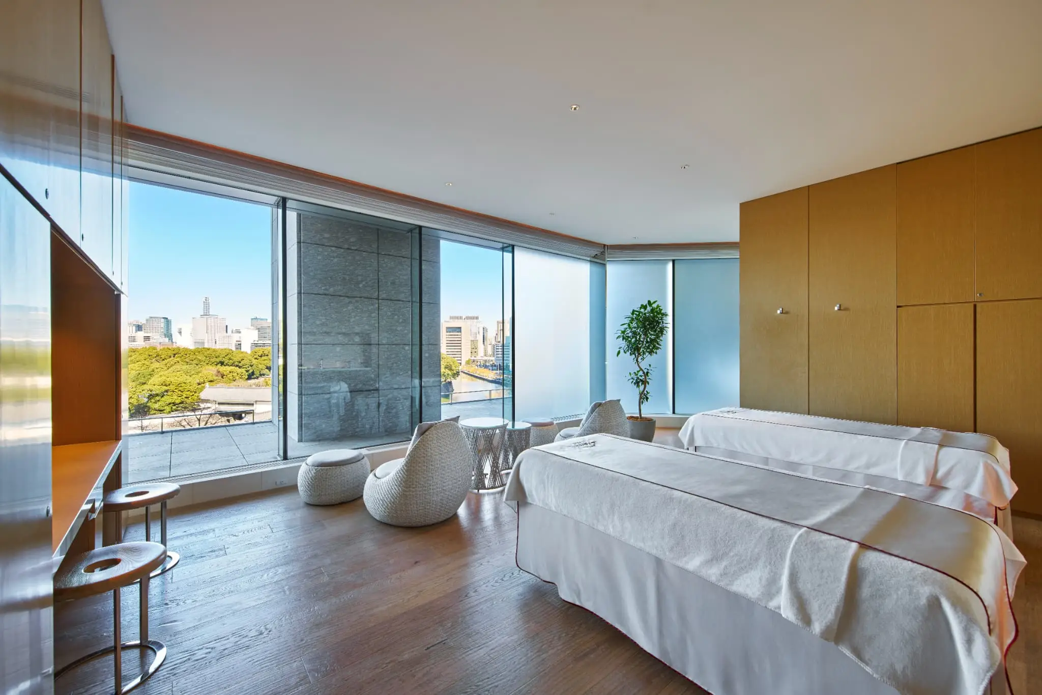 In 2026, Palace Hotel Tokyo’s evian SPA Tokyo was awarded 5 stars by Forbes Travel Guide for the third consecutive year. No doubt the accolades recognize the spa’s unrivalled views from its prime location, directly overlooking the Imperial Palace moat and gardens, and even all the way to Mt. Fuji on a clear day. True to its name, the atmosphere inside evian SPA Tokyo is super fresh, like pure Alpine spring water flowing through each room and into the open sky.