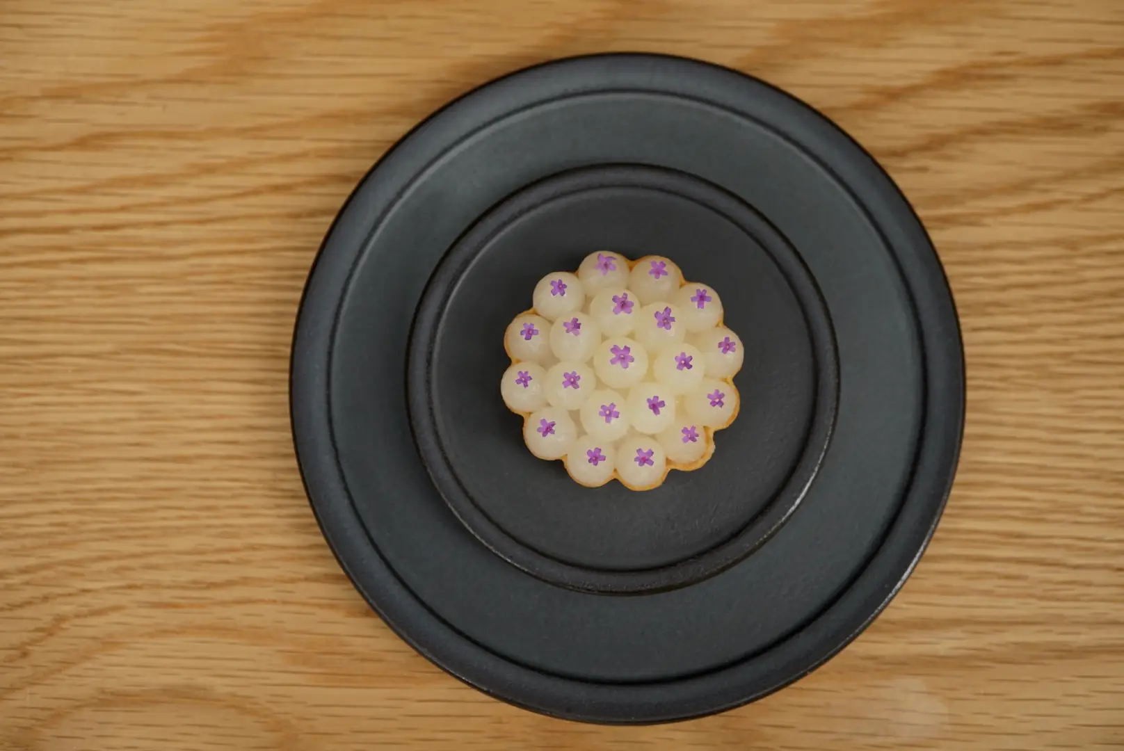 Chef Haruta uses carefully selected salts such as Tosa no Shiomaru, naturally harvested through a method that produces no carbon dioxide emissions, as well as sun-dried sea salt from Guérande in France. He also makes a conscious effort to incorporate honey into desserts and other dishes to support beekeepers and pollinating bees. In addition, he prioritizes sustainably sourced seafood whenever possible, adhering to a strict policy of avoiding juvenile fish and species considered vulnerable in terms of resource sustainability.