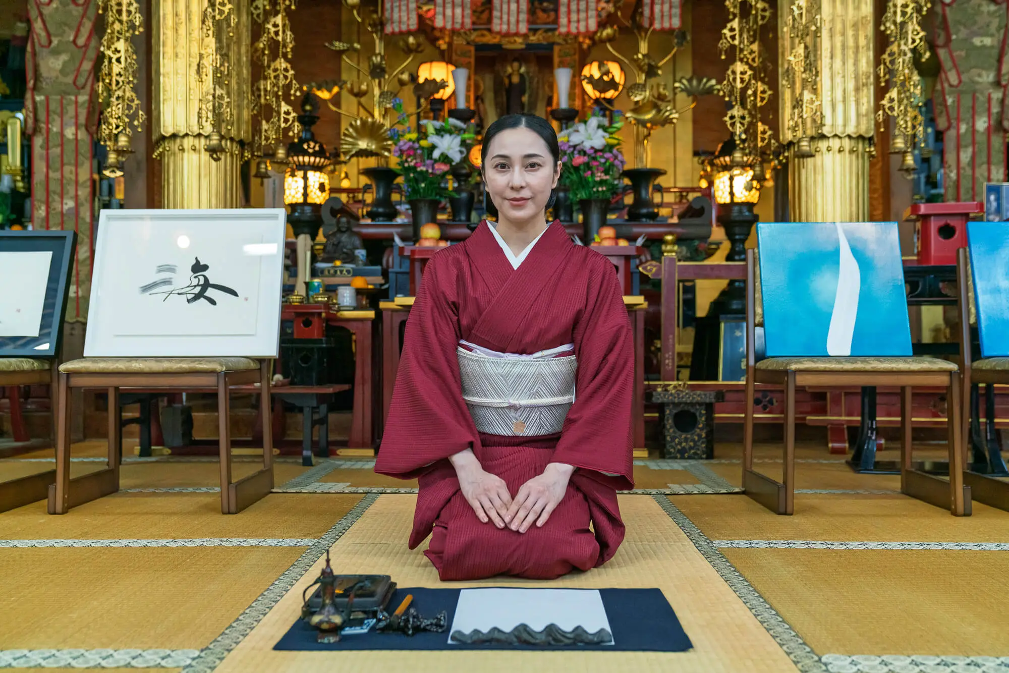 The calligraphy art experience led by Yuna Okanishi begins not with writing, but with silence. Okanishi began studying calligraphy at six years old, and over the decades, she has developed a distinctive approach that honors tradition while pushing into the realm of contemporary art. Alongside traditional scrolls, she also works with canvases and pigments, her focus lying in expressing what she calls the beauty of curved lines, and the emotions that flow through every stroke.