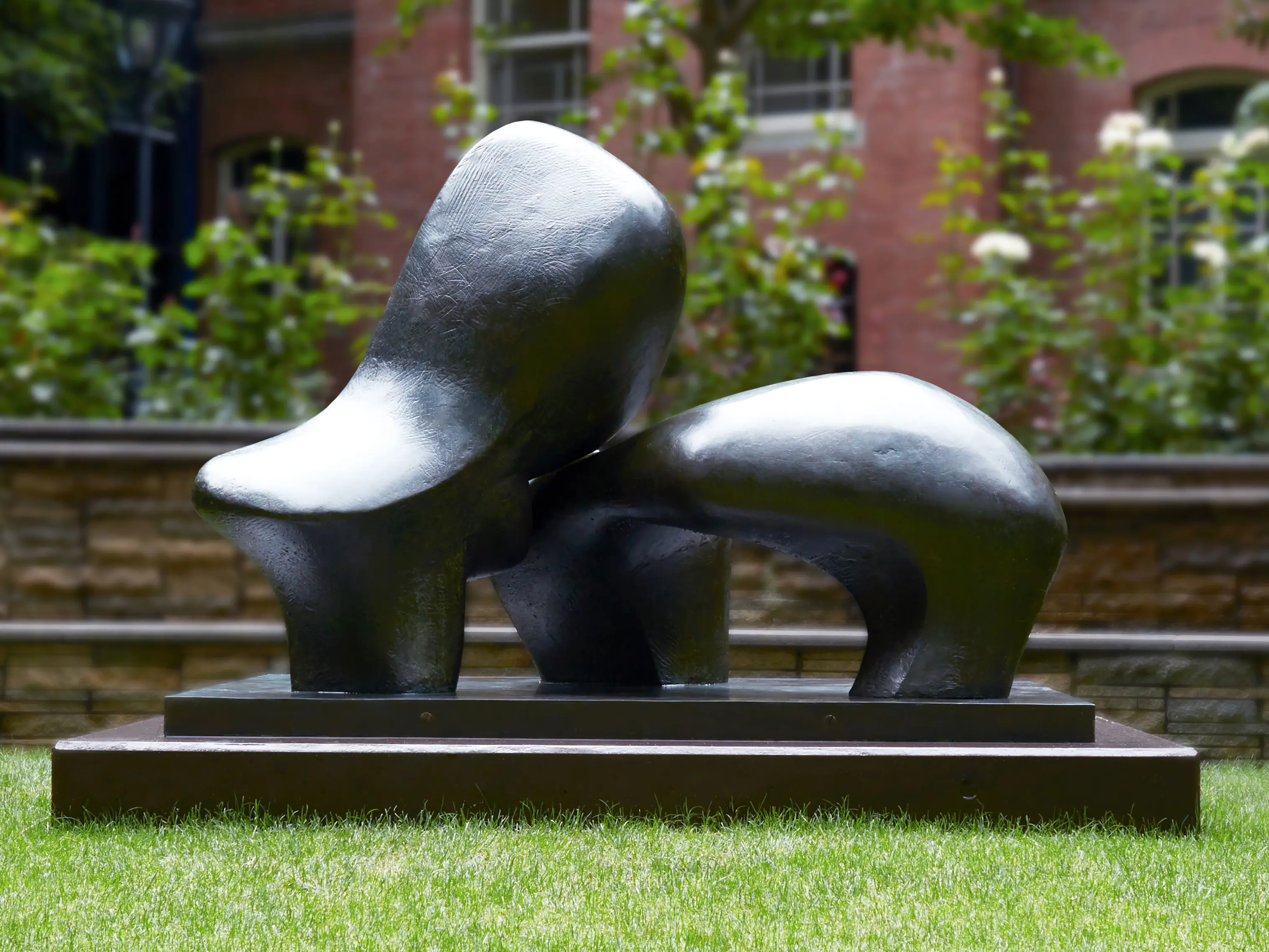 Beyond the sidewalk, British artist Henry Moore's "Working Model for Sheep Piece" (1971) set the tone for the entire Mitsubishi Ichigokan Museum garden that was built around it. The abstract sculpture's peaceful presence in the bustling business district blends in gracefully with the architecturally restored Ichigokan, as if closing the circle of Mitsubishi's vision for Marunouchi, past, present and future.